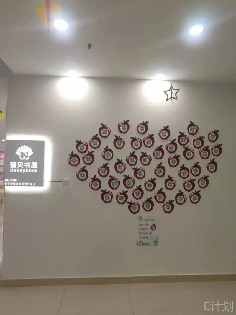留贝书屋为此次画展配备了“黑科技”:在《梁溪童话》Ⅱ书上出现过的,带着小朋友们故事朗诵的声音二维码,这些二维码被富有创意的做成了一个个“苹果”,等着大家去收获声音的果实。